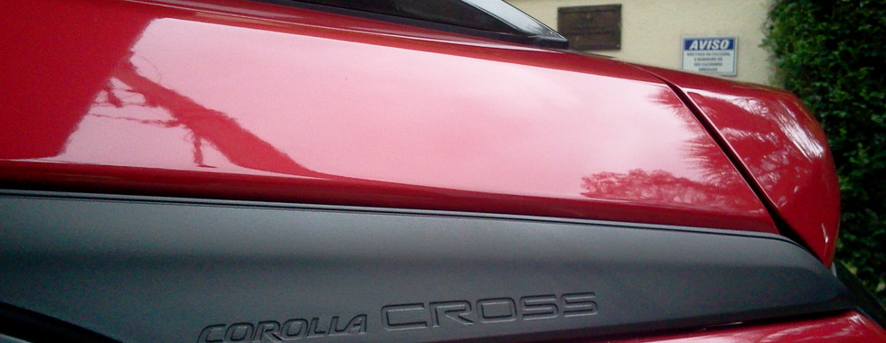 Para terminar nossa observação externa, não poderíamos deixar de passar por uma das polémicas nos últimos tempos em relação ao modelo, que é o muito visível abafador do escapamento, o que ocorre devido ao para-choques em posição bem elevada (até por isso mesmo o bom ângulo de saída), mas que deixa muito exposta esta peça do veículo. Visível nos modelos que vêm chegando ultimamente nas concessionárias, a Toyota escureceu parte do escapamento para torna-la menos evidente, numa solução apenas paliativa e que deverá ter uma mudança mais técnica em futuras atualizações ao modelo, deixando o Corolla Cross mais de acordo com a solução encontrada em outros mercados.